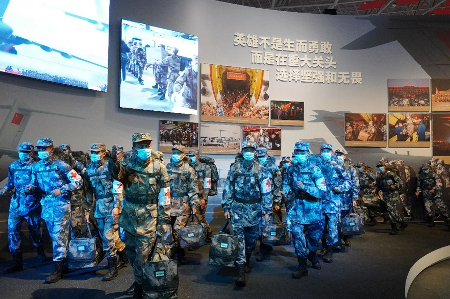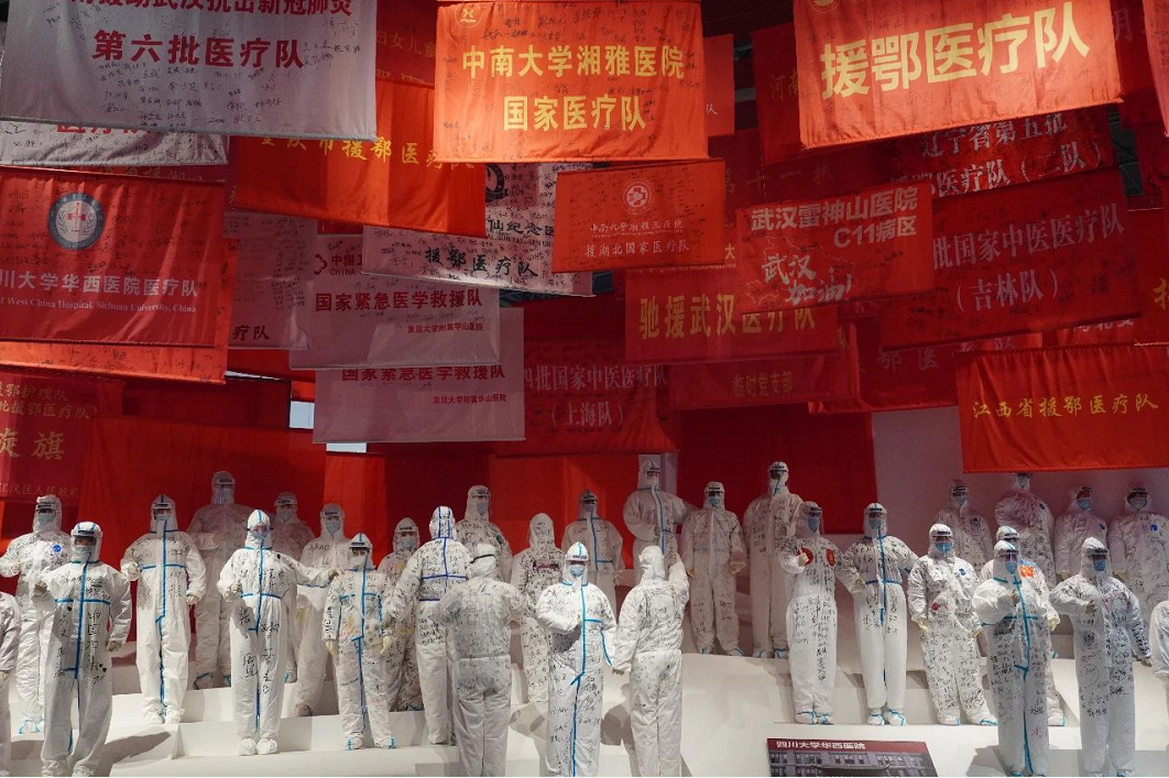 武漢市抗疫展覽館內(nèi),6個主題展區(qū)、1100余張照片、45個視頻、1000余件實(shí)物展品……,正是用一件件物品、一張張照片,帶領(lǐng)人們回到了年初波瀾起伏的數(shù)月。一幅幅寫實(shí)抗疫照片以及專門復(fù)原的雷神山醫(yī)院、方艙醫(yī)院等實(shí)物場景,集中展示了英雄的武漢人民在黨中央的堅(jiān)強(qiáng)領(lǐng)導(dǎo)下進(jìn)行抗疫斗爭的鮮活場景和感人事跡,瞬間把大家的思緒拉回到了那場驚心動魄、沒有硝煙的戰(zhàn)役中。集中展示了以習(xí)近平同志為核心的黨中央團(tuán)結(jié)帶領(lǐng)全國人民打贏疫情防控的人民戰(zhàn)爭、總體戰(zhàn)、阻擊戰(zhàn)的偉大歷程。
